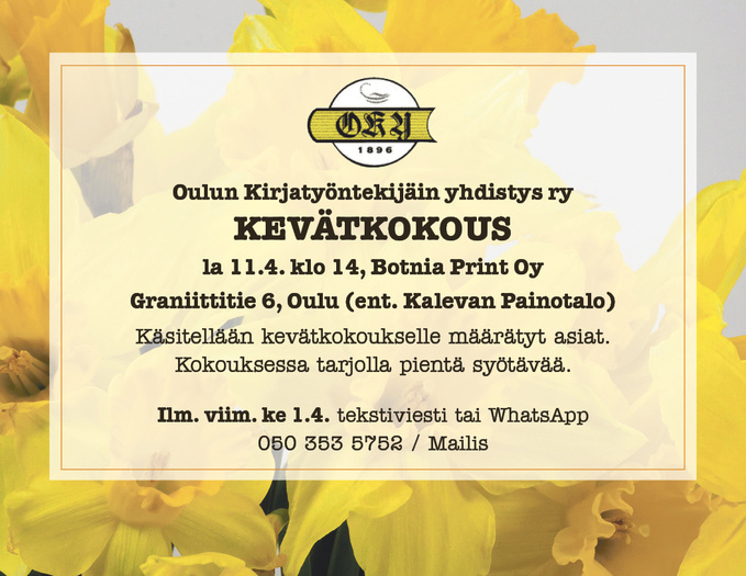 Oulun Kirjatyöntekijäin Yhdistykseksi vuonna 1945.
